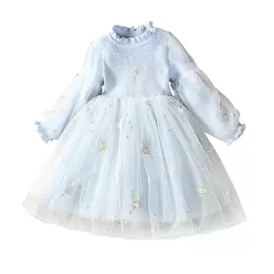 Girls' dress spring new Pengpeng gauze female baby children's suit girl princess sweater skirt