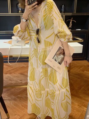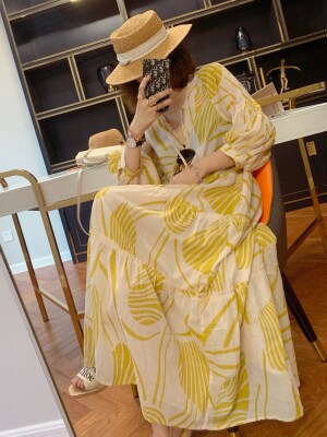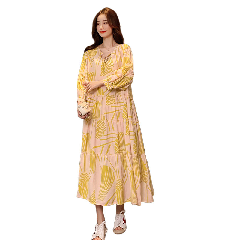 ins Spring Maternity Dress Women Spring And Autumn Long Sleeves Korea Retro Super Immortal Net Red Seaside Cotton Summer Long Skirt