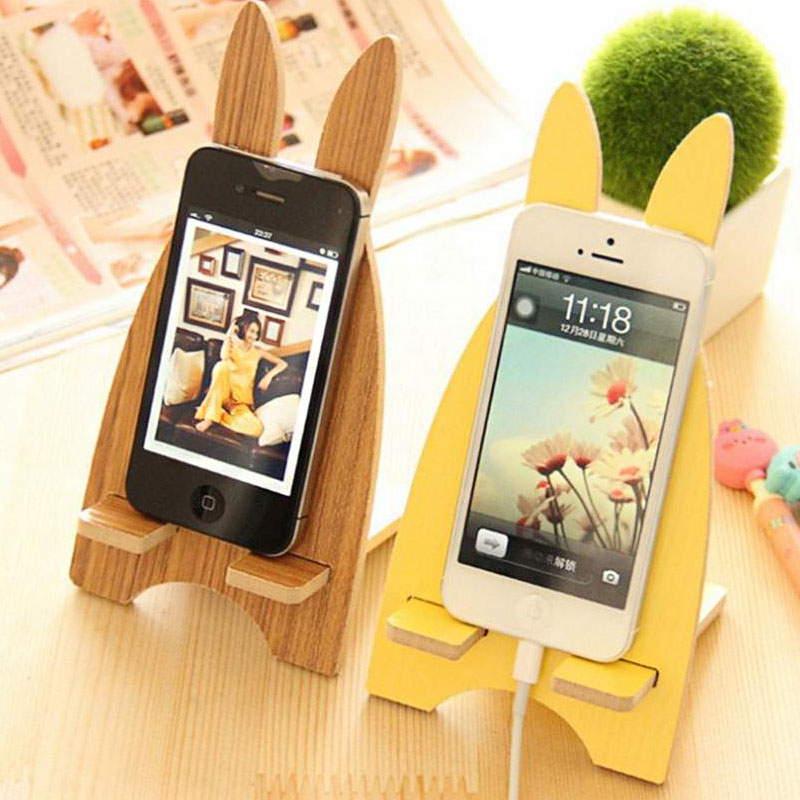 Cute Cartoon Wooden Rabbit Desk Watch TV Watch Movie Divine Artifact Support Bracket Simple Phone Shelf Tip Clip Portable Kids Girls Lazy Stand