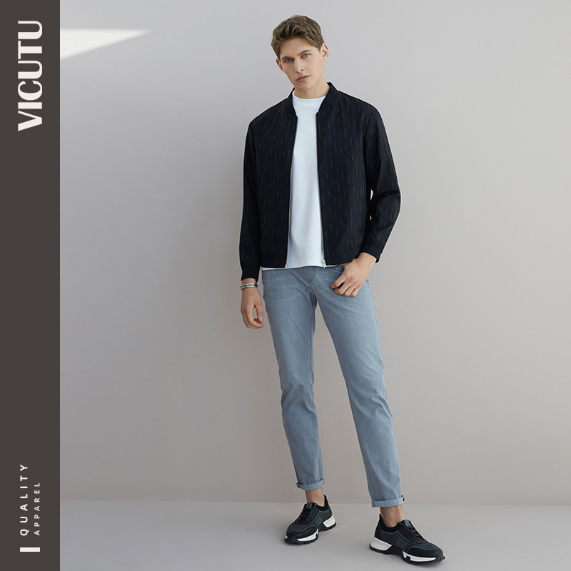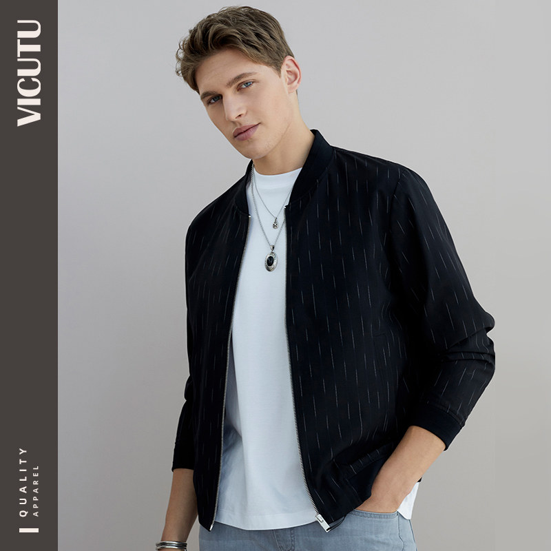 VICUTU men's jacket slim business casual striped baseball collar short fashion jacket for men