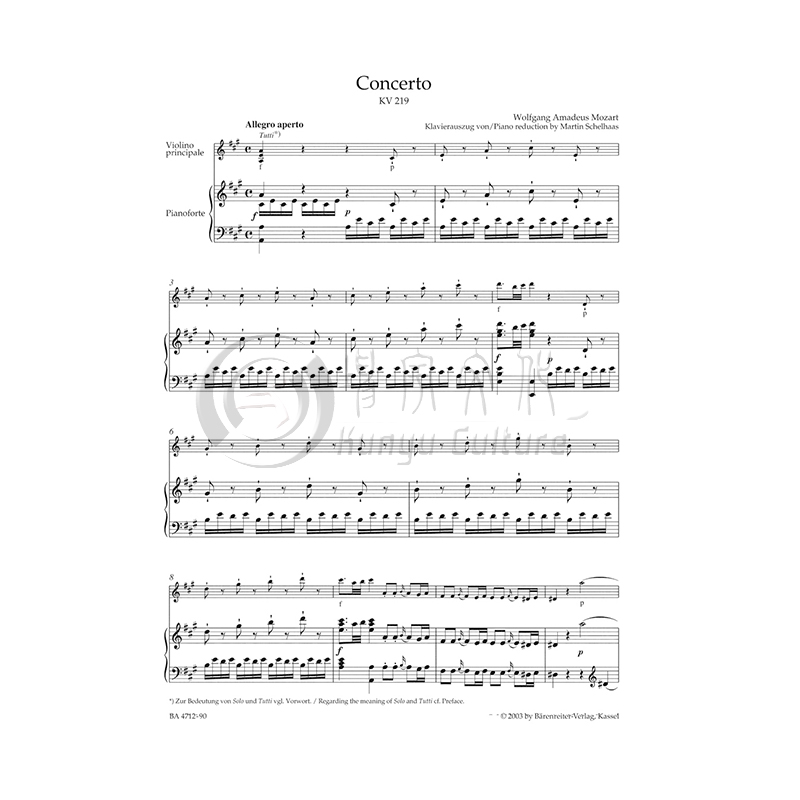 Mozart Fifth Violin Concerto A large tune K219 with steel accompanied by German Riding Bear original score Mozart Concorto for Violi