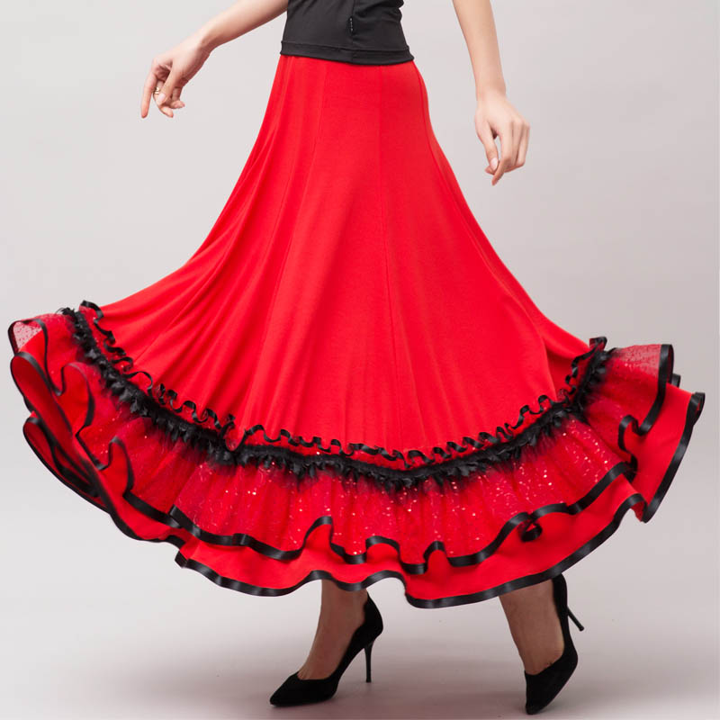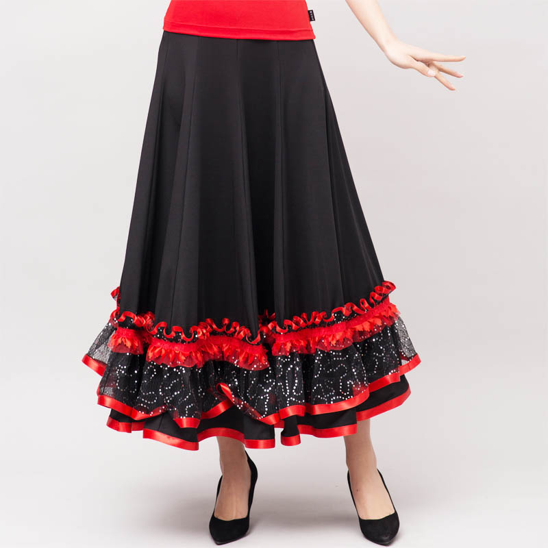 New big pendulum dance long skirt spot Black sequin skirt Modern dance practice skirt Courtesy skirt C_020