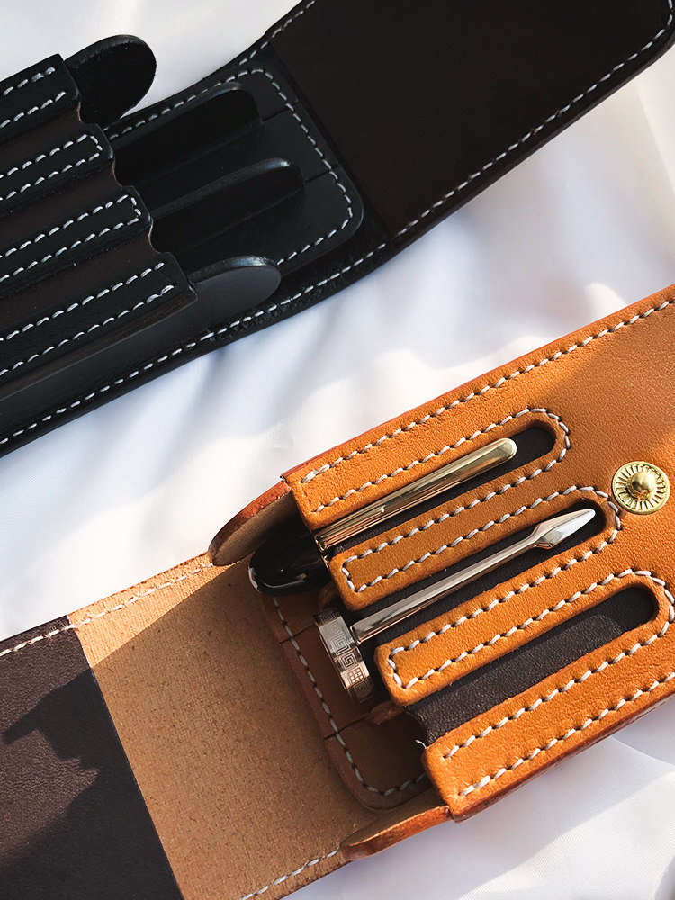 Ink-out Made in Italy Tannic Cow Leather Cramp Pen Bag Pen Bag Pen bag Pen Curtain Cashier Bag Pen Case Portable containing Leather Bag BRIEF PEN BAG HAND CREATIVE
