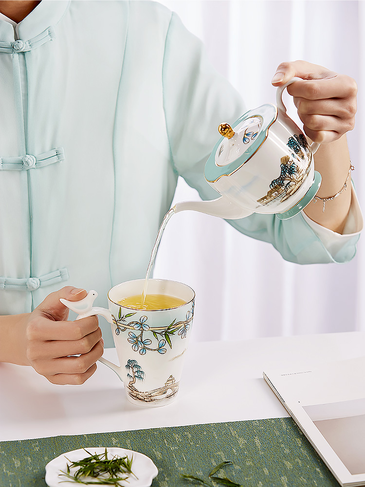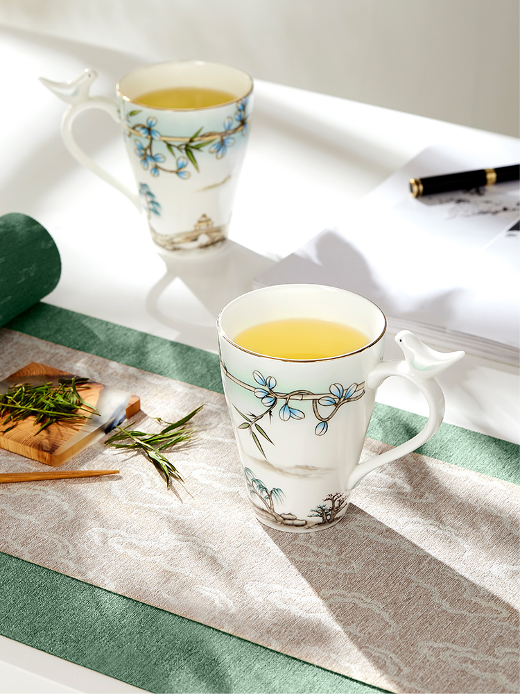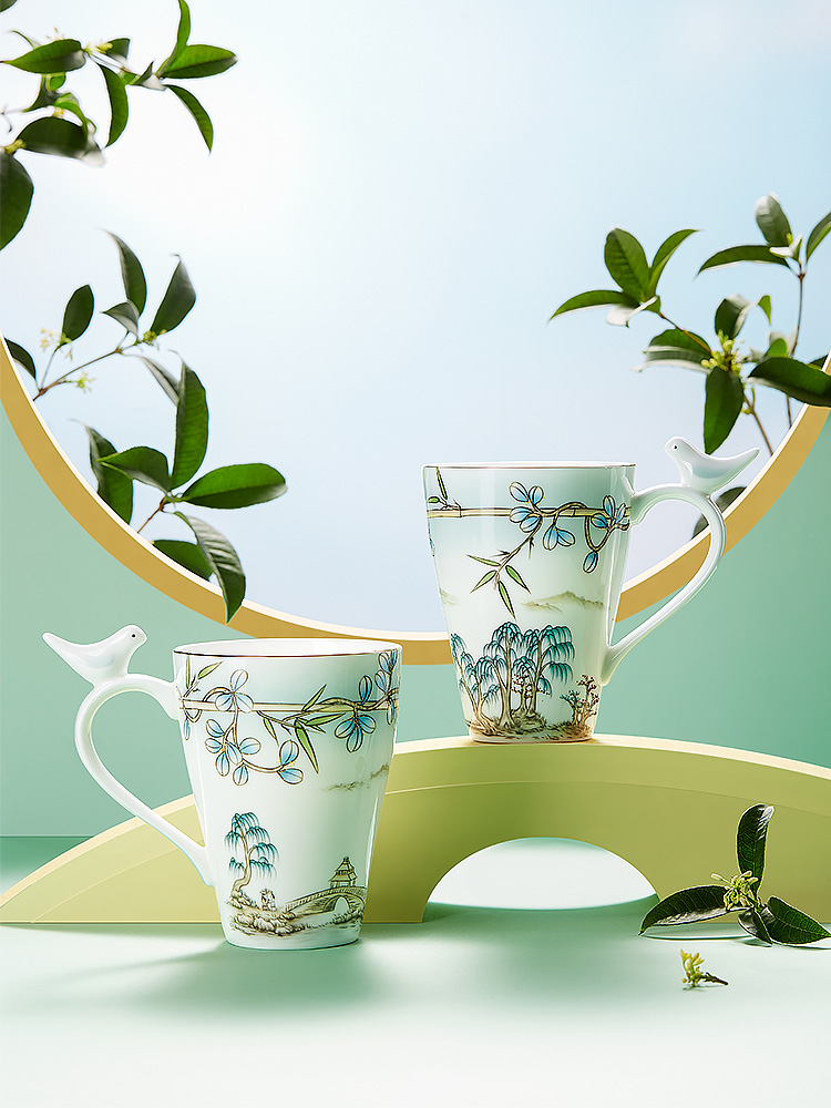 Margoronte Bird Pair Cup Teacup Bone China Mug Gift Box Porcelain Cup Bone China Mark Ceramic