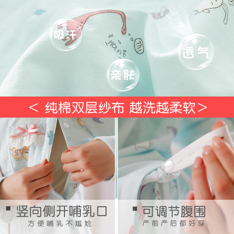 Home Time Month Subsuit Summer Thin section Postnatal gauze pyjamas Pregnant Woman Spring Autumn Pure Cotton Lactation Lactation Maternal Discharge