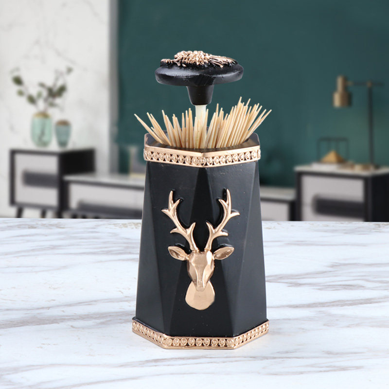 Black pine cone deer pressed toothpick box Black ink pattern pressed toothpick box Green pine cone deer pressed toothpick box Blue deer cotton swab box with feet three compartments Blue gold pine cone deer pressed toothpick box Orange