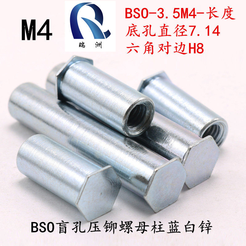 BSO-3 BSO-3 5M4 blind hole press riveting nut column 4-50 open pore 7 2 sheet hexagonal iron press riveting column environmentally-friendly blue white zinc-Taobao