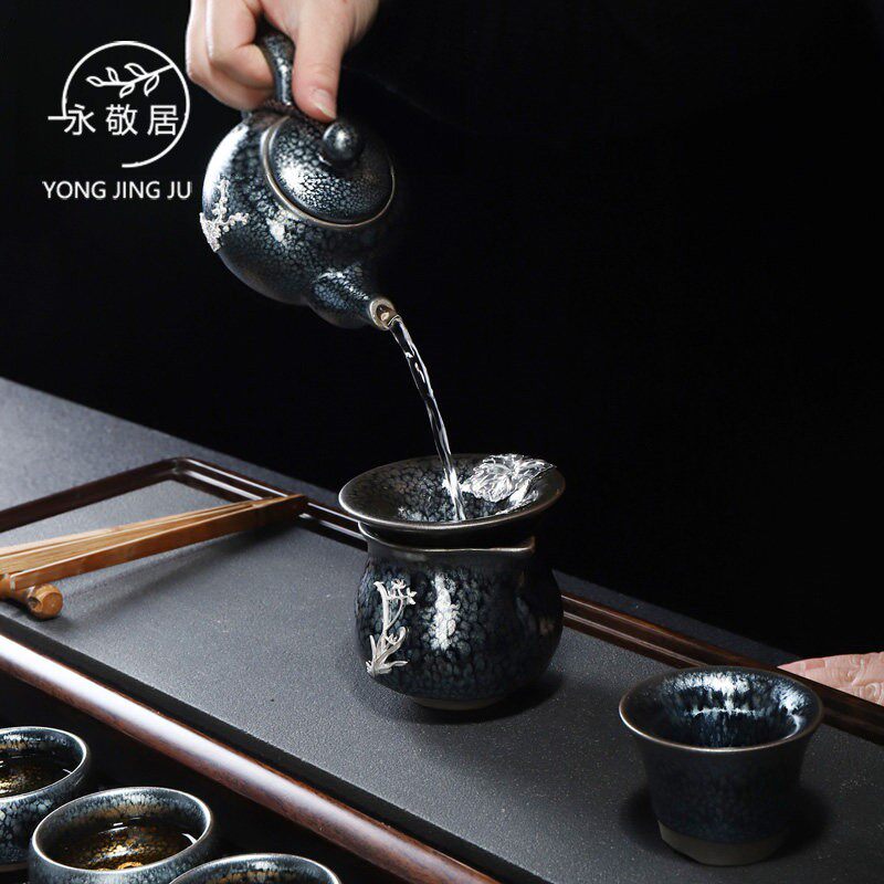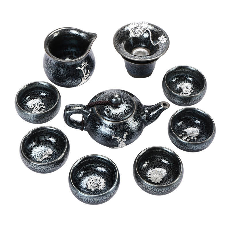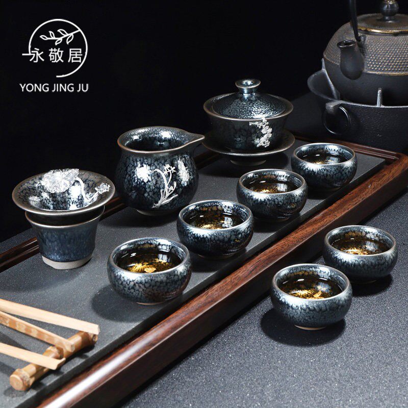 Silver inlaid oil-drop chrysanthemum cup (teapot set) inlaid silver-inlaid oil-drop chrysanthemum cup (covered bowl set) iron tire Jian cup - silver inlaid tea set set 11 iron tires Jian cup - silver inlaid tea set set 12 iron