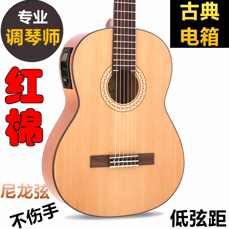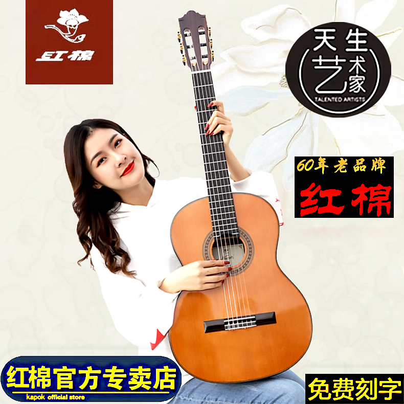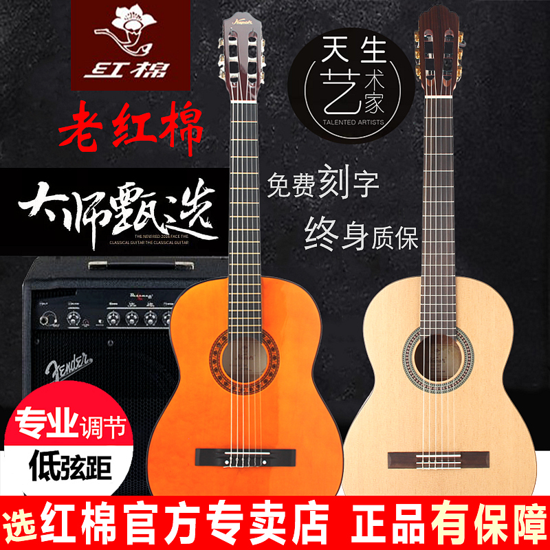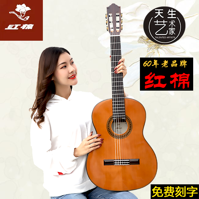 (Store)red cotton classical guitar 39 inch 34 36 veneer nylon children's test examination men and women beginner electric box