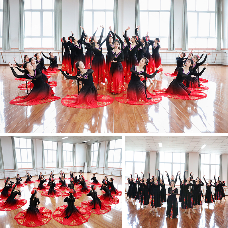 Ethnic dance in Xinjiang ethnic dance performance exam Classroom rehearsal Wei Ethnic Dance Embroidered Flower Long Sleeve Blouse to be built with a body suit