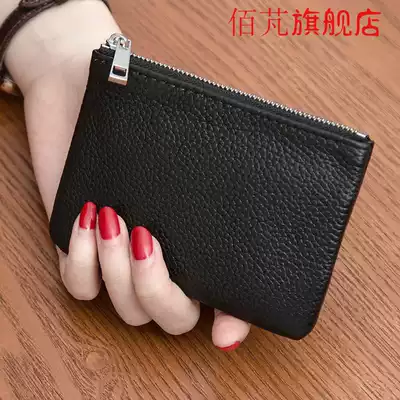 Cowhide men's and women's mini coin purse Ultra-thin leather zipper coin bag Short small wallet hand key bag card bag female