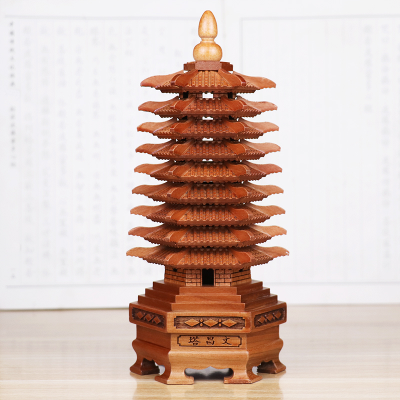 Peach Wood Finely Carved Nine Floors Wenchang Tower Pendulum Pieces thirteen Floors 13 Layers Book Room Craft Gift Hem Decorated Desk Room Decoration