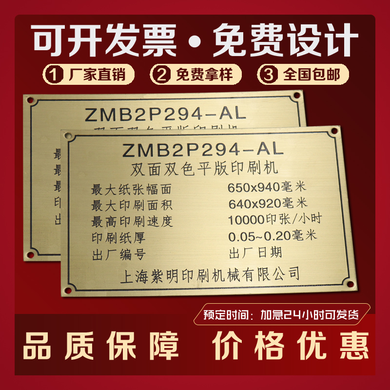 Manufacturer nameplate customized aluminum sign customized stainless steel corrosion corrosion corrosion corrosion metal wire printing sign bronze medal label mechanical equipment panel sand blasting laser engraving oxidation hollow sign