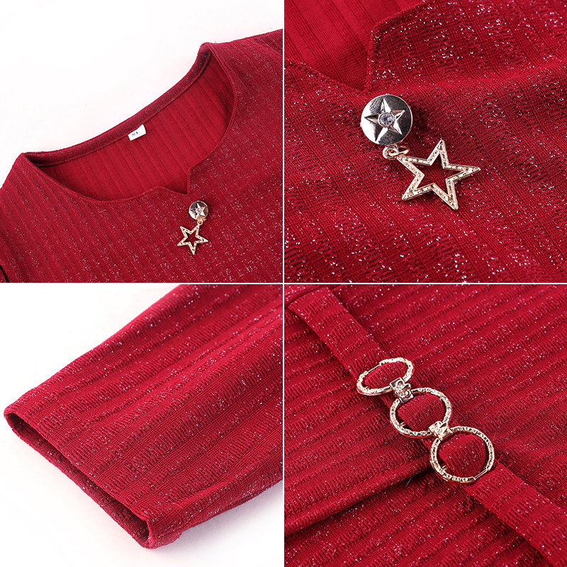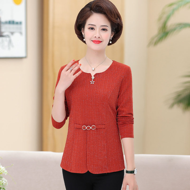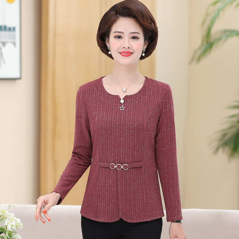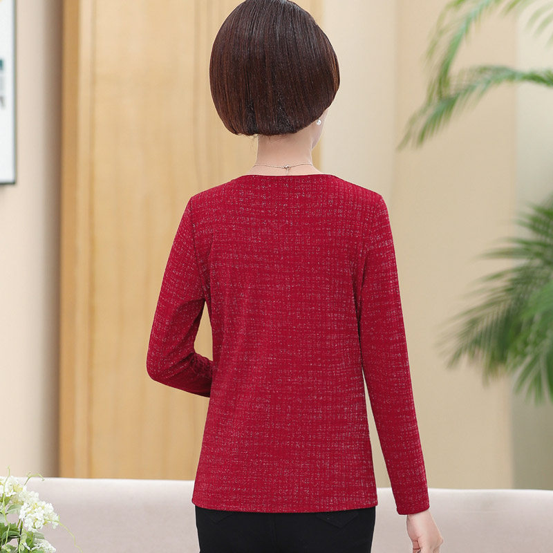 Mother Spring Clothing T-shirt Middle-aged Woman 40-year-old 50-year-old 50-year-old in the undershirt Older spring and autumn blouses short fashion
