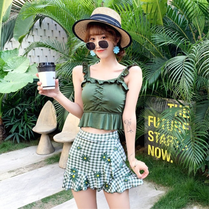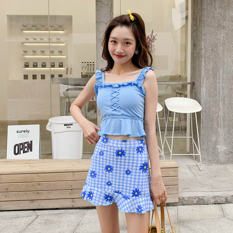 Spa swimsuit women's two style skirts flat corners Two sets of small frescoed students conservative small breasted version of a slim swimsuit