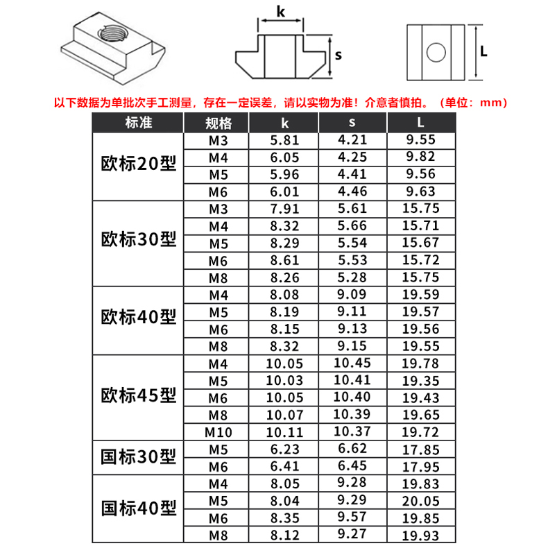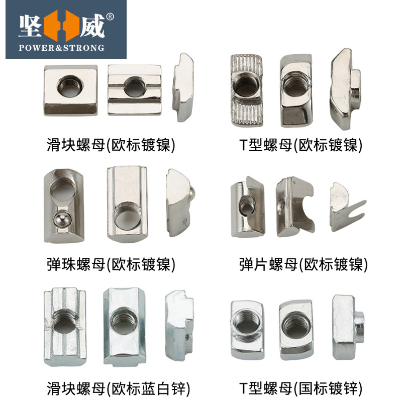 ———————— below is aluminum profile T-type nut ———————— ———————— below is aluminum profile slider nut ———————— Euro standard slider 30 type] M3 (10 grains) nickel plated European standard slider 30 type] M4 (10 grains) nickel plated European standard slider 30 type] M8 (10 grains) nickel plated European standard slider 40 type] M8 (5 grains) blue and white zinc GB slider 30 type] M5 (10 grains) blue and white zinc GB slider 40 type] M4 (5 grains) blue and white zinc GB slider 40 type] M6 ( 5 grains) blue and white zinc ———————— below aluminum shrapnel nut ———————— European standard shrapnel 30 type] M5 (5 grains) nickel plated European standard shrapnel 30 type] M6 (5 grains) nickel plated European standard shrapnel 40 type] M6 (5 grains) nickel plated European standard shrapnel 40 type] M8 (5 grains) nickel plated European standard shrapnel 45 type] M4 (5 grains) nickel plated ———————— nickel plated steel ball———————— 45 type M4 (5 grains) nickel plated euro standard shrapnel 45 type] M4 (5 grains) nickel plated European standard shrapnel 30 type] M4 ( 5 grains) nickel plated European steel ball 30 type] M5 (5 grains) nickel plated European standard steel ball 30 type] M6 (5 grains) nickel plated European standard steel ball 30 type] M8 (5 grains) nickel plated European standard steel ball 40 type] M5 (5 grains) nickel plated European steel ball 45 type] M4 (5 grains) nickel plated European standard steel ball 45 type] M8 (5 grains) nickel plated European standard T type 20] M3 (20 grains) nickel plated European standard T type 20] M4 (20 grains) nickel plated European standard T type 20] M5 (20 grains) nickel plated European standard T type 30 type] M5 (20 grains) nickel plated European standard T type 30] M3 (20 grains) Nickel plating European Standard T Type 30] M4 (20 grains) Nickel plated European Standard T type 30] M5 (20 grains) Nickel plated European Standard T type 30] M6 (20 grains) nickel plated European Standard T type 40] M3 (10 grains) nickel plated European Standard T type 40] M4 (10 grains) nickel plated European Standard T type 40] M5 (10 grains) nickel plated European Standard T type 40 type] M6 (10 grains) nickel plated European standard T type 40 type] M8 (10 grains) nickel plated European standard T type 45] M4 (10 grains) Nickel plating European standard T type 45] M5 (10 grains) nickel plating European standard T type 45] M6 (10 grains) nickel plating European standard T type 45 type] M8 (10 grains) nickel plating GB T type 30 type] M4 (20 grains) galvanized GB T type 30 type] M5 (20 grains) galvanized GB T type 40 type] M4 (20 grains) galvanized GB T type 40 type] M6 (20 grains) galvanized European standard slider 20 type M3 (20 grains) blue and white zinc European standard slider 20 type] M4 (20 grains) blue and white zinc European standard slide Type 20] M5 (20 grains) Blue and White Zinc European Standard Slider 20 Type] M6 (20 grains) Blue and White Zinc European Standard Slider 30 Type] M5 (10 grains) Nickel Plated European Standard Slider Type 30] M6 (10 grains) Nickel Plated European Standard Slider Type 40] M4 (5 grains) Blue and White Zinc European Standard Slider Type 40] M5 (5 grains) Blue and White Zinc European Standard Slider 40 Type] M6 (5 grains) Blue and White Zinc European Standard Slider Type 45] M4 (5 grains) Blue and White Zinc European Standard Slider 45 Type] M5 (5 grains) Blue and White Zinc European Standard Slider 45 Type] M6 (5 grains) Blue White Zinc European Standard Slider 45 Type] M8 (5 grains) Blue White Zinc European Standard Slider 45 Type] M10 (5 grains) Blue White Zinc GB Slider 30 Type] M6 (10 grains) Blue White Zinc GB Slider 40 Type] M5 (5 grains) Blue and White Zinc GB Slider 40 Type] M8 (5 grains) Blue and White Zinc European Standard Shrapnel 30 Type] M8 (5 grains) Nickel Plated European Standard Shrapnel 40 Type] M5 (5 grains) Nickel Plated European Standard Shrapnel 45 Type] M5 (5 grains) Nickel Plated European Standard Shrapnel 45 Type] M6 (5 grains) Nickel plated European standard shrapnel 45 type] M8 (5 grains) nickel plated European standard steel ball 20 type] M4 (5 grains) nickel plated European standard steel ball 20 type] M6 (5 grains) nickel plated European standard steel ball 40 type] M4 (5 grains) nickel plated European steel ball 40 type] M6 (5 grains) nickel plated European standard steel ball 40 type] M8 (5 grains) nickel plated European standard steel ball 45 type] M5 (5 grains) nickel plated European steel ball 45 type] M6 (5 grains) nickel plated
