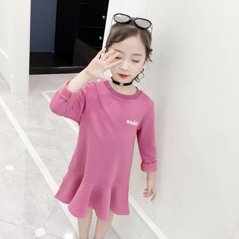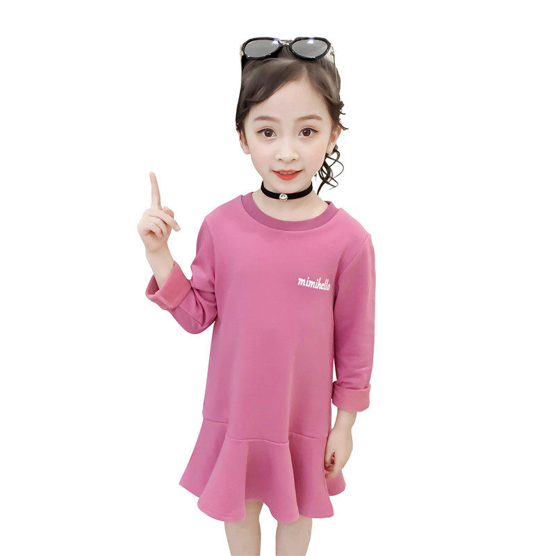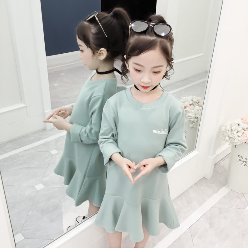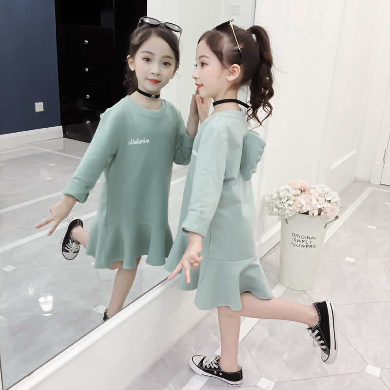 Girls ' Foreign style dress 2021 autumn new Korean children's medium and long skirt baby wings sweater skirt tide