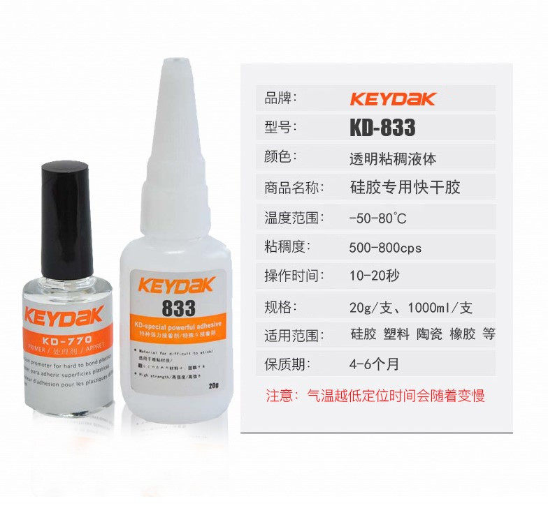KD-833 Silicone Gel Stick Plastic Quick Dry Glue Silicone Adhesive Polyurethane Quick Dry Glue Small Area Adhesive Glue