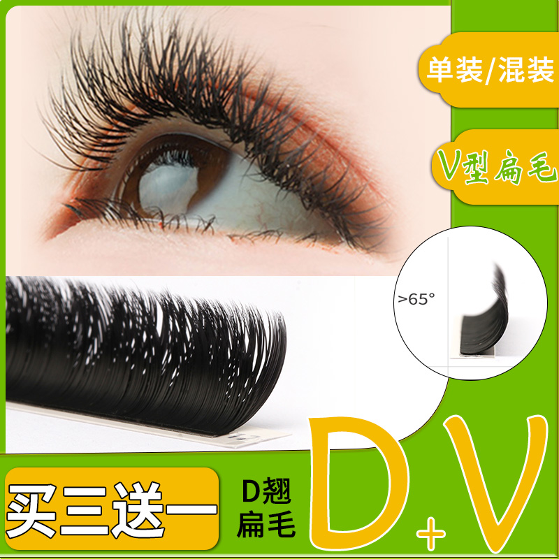Double hair tip D warped V-shaped grafting eyelash flat hair big V Barbie warped super soft curled flowering eyelash thick mix