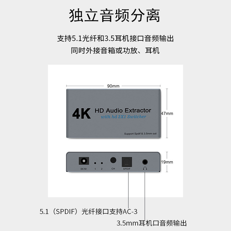 hdmi audio separator 4k2 in 1 out switching turns 3 5 optical fiber 10% 2 set-top box ps4 converter 2 0