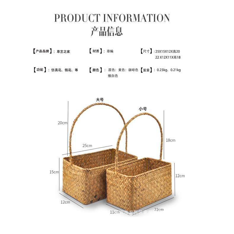 Yi white seagrass square basket flower basket bride handmate flower basket with high-end basket