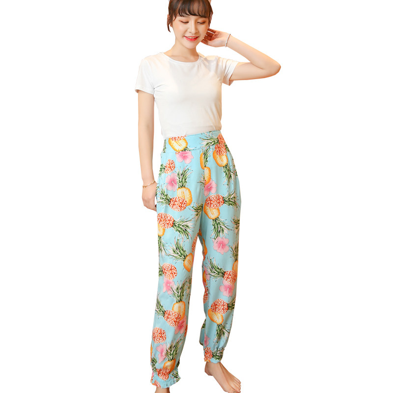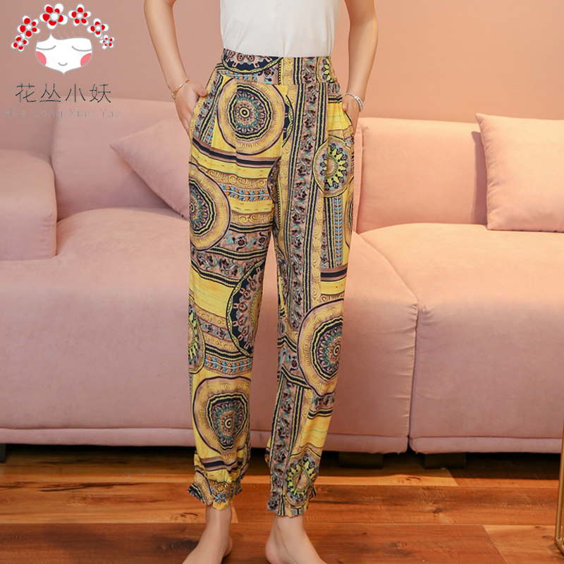 Lady Cotton Silk Spring Summer Home Pants Artificial Cotton Silk 100 lap loose sheet Broadleg Light Cage Pants Mosquito Repellent outside
