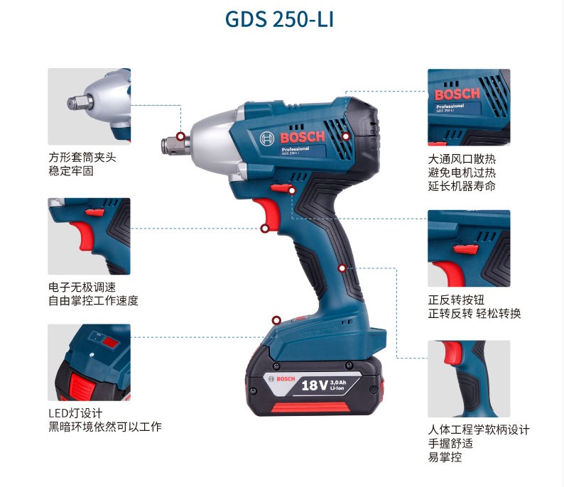 Bosch GDS250-LI 18V-EC300ABR impact wrench Lithium rechargeable brushless high torque electric screwdriver