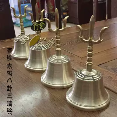 Handmade pure copper bronze Sanqing bell Tai Chi Bagua Taoist dharma instrument Brass three-pronged bell Taoist bell 22 years in stock
