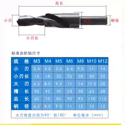 Secondary step drill countersunk head screw drill bit second-order countersunk drill bench stage drill white steel non-standard step drill M3-M16