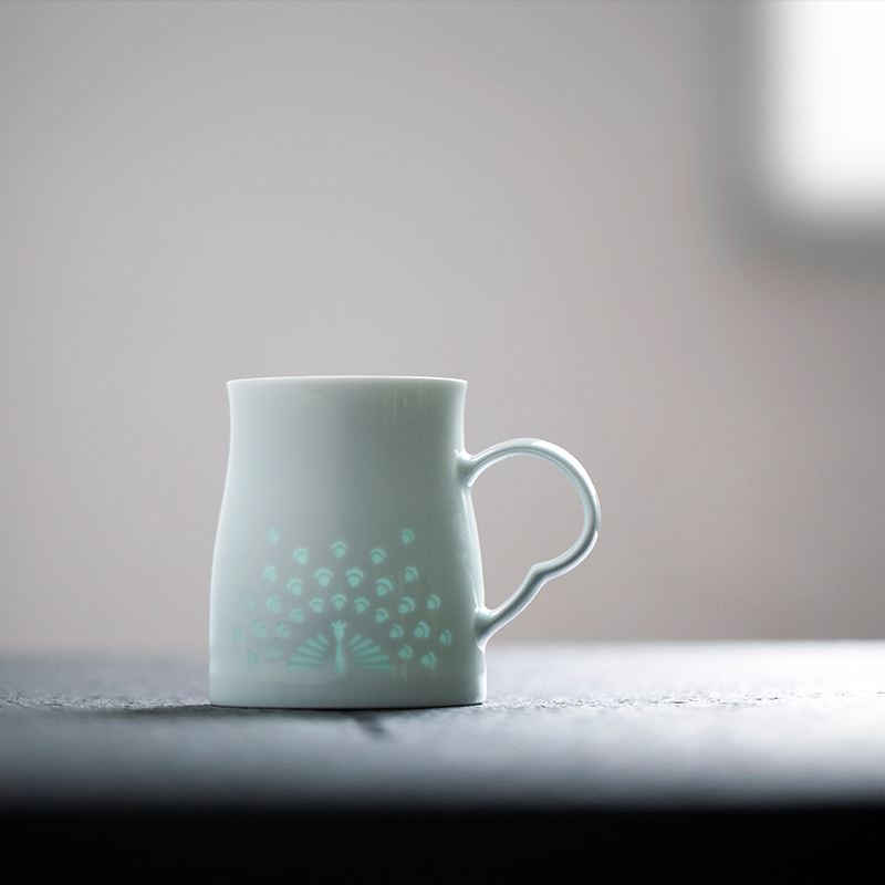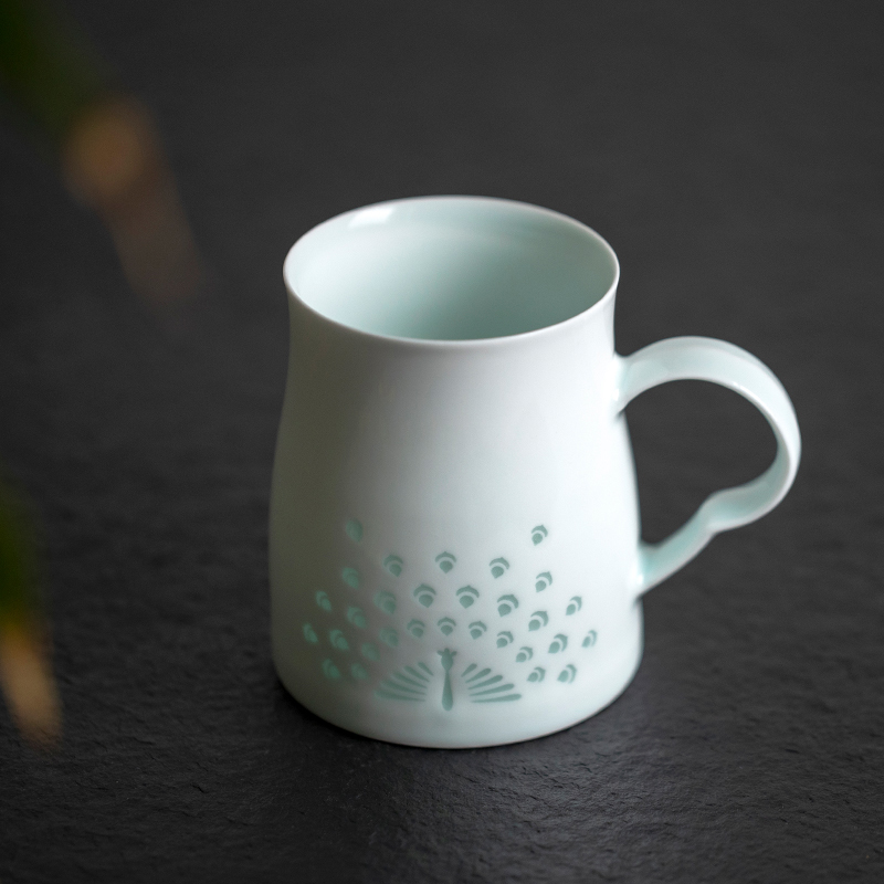 Landscape-room auspicious bird peacock lingo cup ceramic mark cup creative mug cup female large capacity water cup high face value