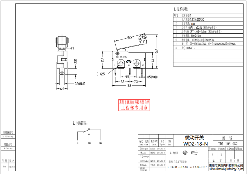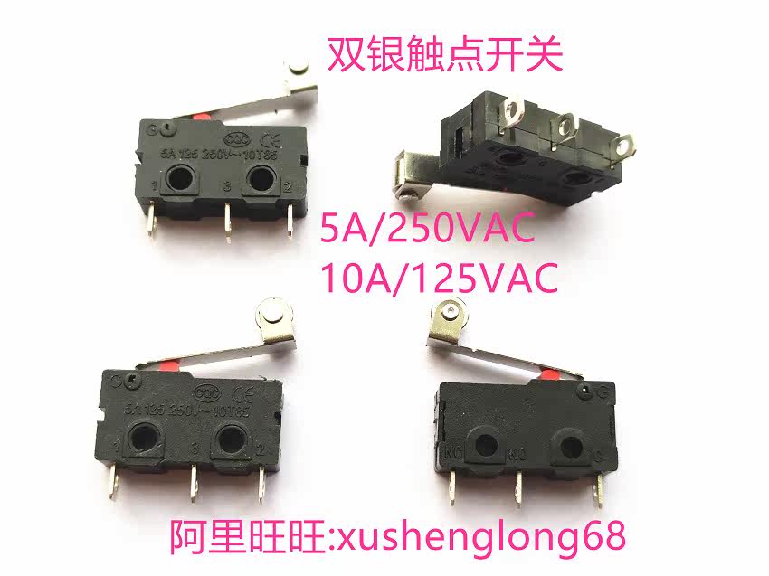 Micro switch WD2 small stroke limit switch 3 feet with handle roller pressure handle Touch button push button switch
