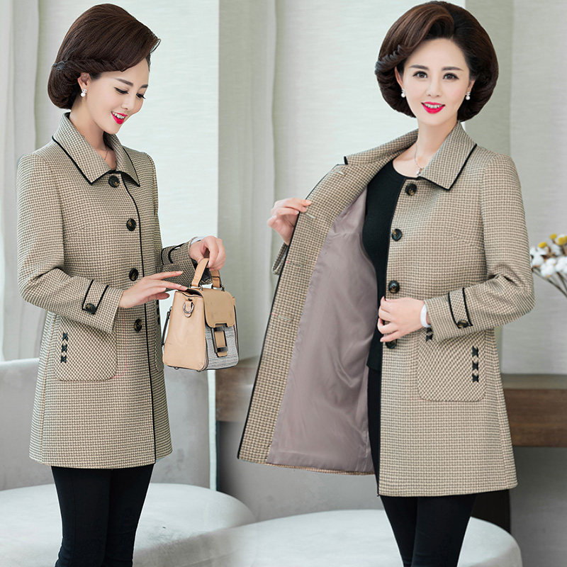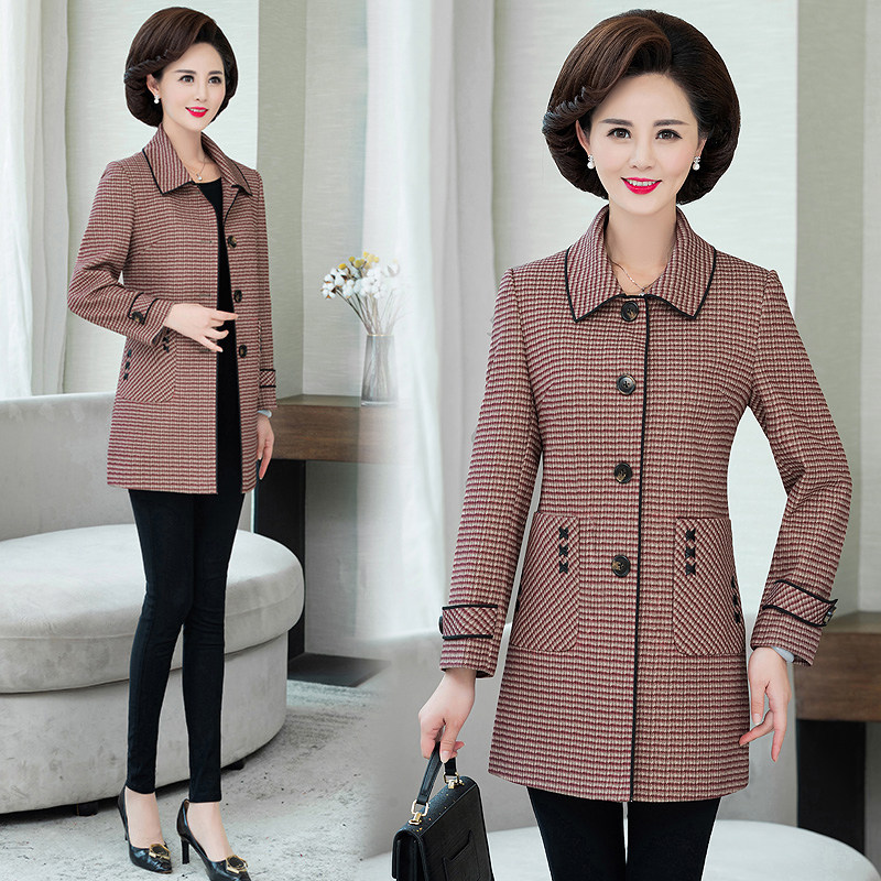Mom Spring and Autumn coat middle and elderly spring gas coat middle-aged woman dress broad wife