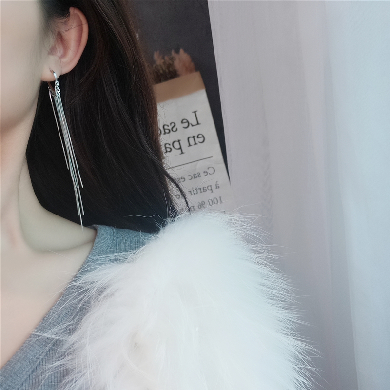 Small Crowdline Loving Silver Needle Streaming Suearrings Woman Long Version Earrings 2020 New Temperament Slim EAR ORNAMENTS