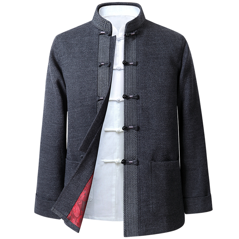 Tang costume men middle-aged and elderly wool thick autumn and winter Chinese style dad dress long sleeves grandpa dress birthday wool coat