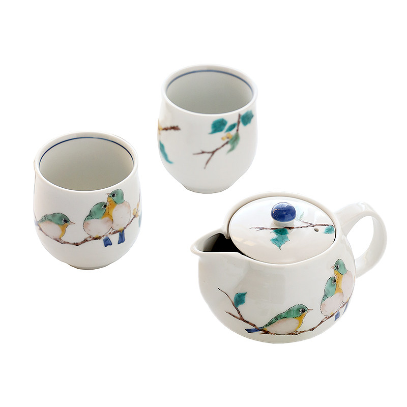 Japan Imports Nine Valley Burning Ceramic Embroidered Small Bird Teapot Teapot Tea Set Day Style Kung Fu Kit Tea Cup With Gift Box