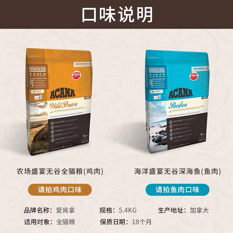 Aikena Canada imported cat food grain-free ocean feast deep-sea fish chicken whole cat food 1 8kg5 4kg