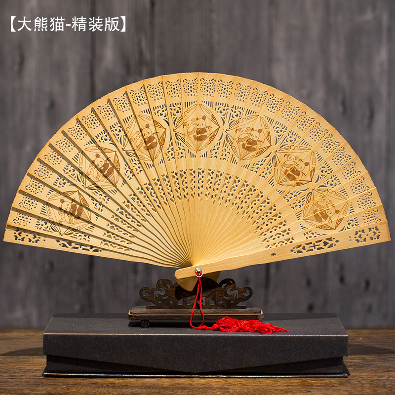 Fragrant wood fan _20 hand-painted-bifacial peacock flower (delivered cotton linen gift box) Berwood series _ vase (send cotton linen gift box) Berwood series _ Giant Panda (Send Cotton Linen Gift Box) Berwood Series _ Lan