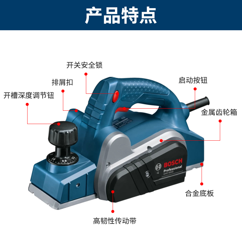 GHO6500 electric planing machine (standard) GHO6500 electric planing machine (standard) planing knife * 2 Bosch tool box GHO6500 electric planing machine electric drill Bosch toolbox