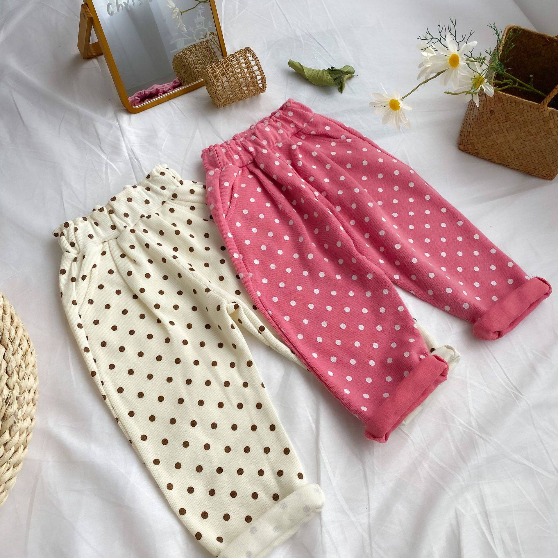 Clearance non-refundable ~ accept re-shoot ~ 2022 spring new girls' polka dot flower bud pants casual foreign