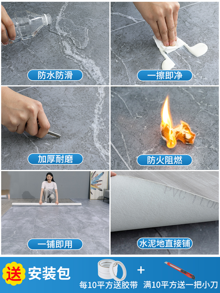 Floor leather thickened wear-resistant waterproof floor patch Cement floor direct paving Household plastic pvc floor tile sticker Self-adhesive