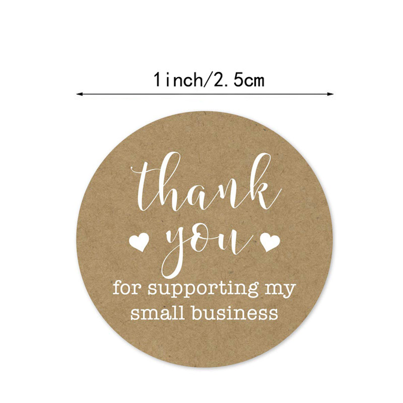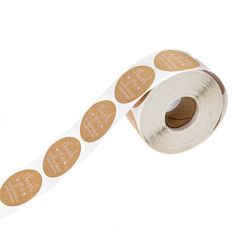 500 rolls of 1 inch round Kraft Paper Gratitude Sticker Sealing Sticker White Font Label Gift Decoration