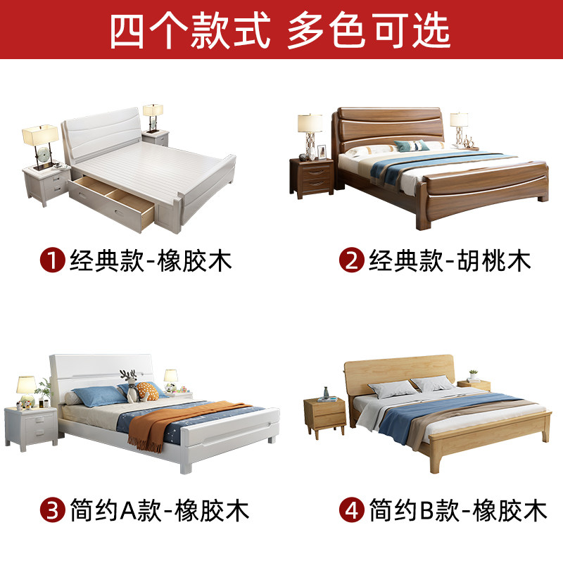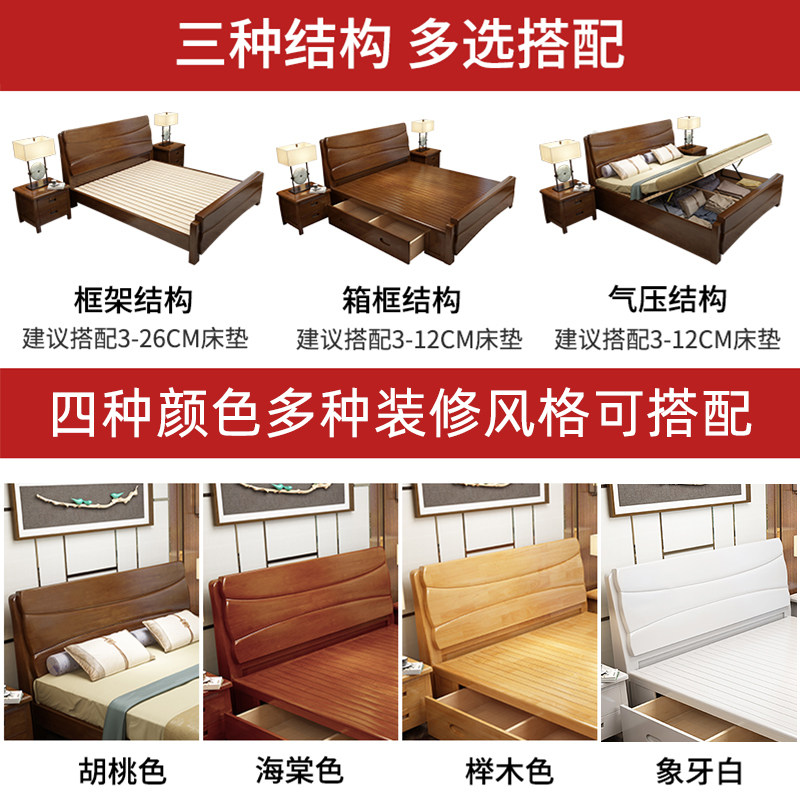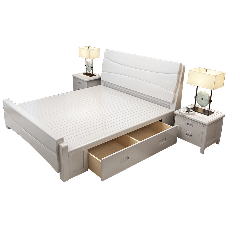 Solid wood bed 18m Chinese style white double bed economical simple modern 15m small apartment master bedroom storage bed