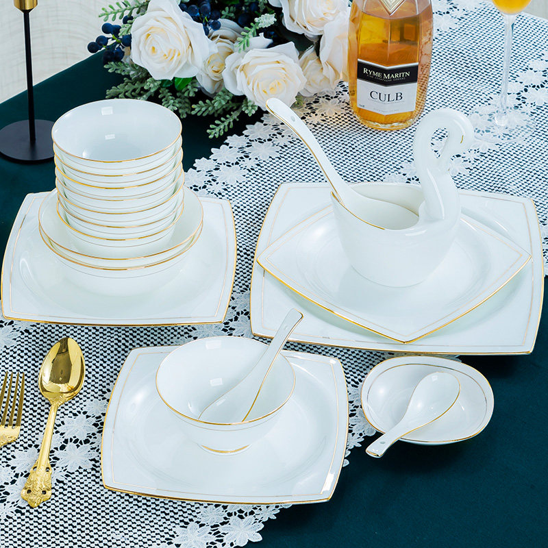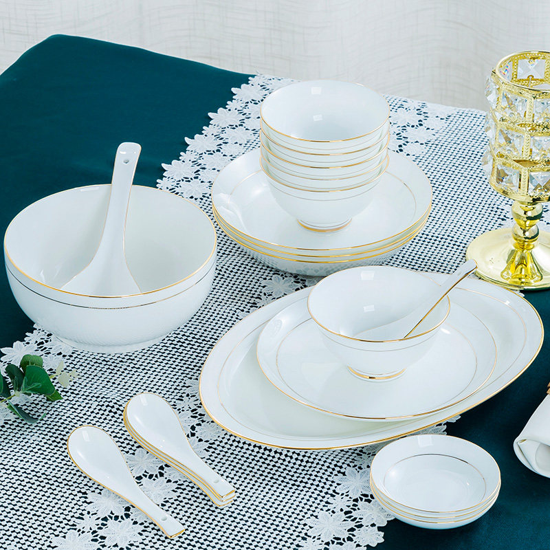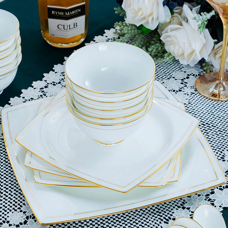 Home Phnom Penh bone china dishes set Jingdezhen ceramic tableware creative bowls and chopsticks light luxury dishes and plates combination Nordic style