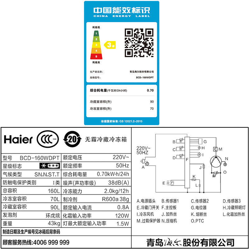 Haier Haier BCD-160WDPT 160 liters two-door two-door small household rental refrigerator dormitory