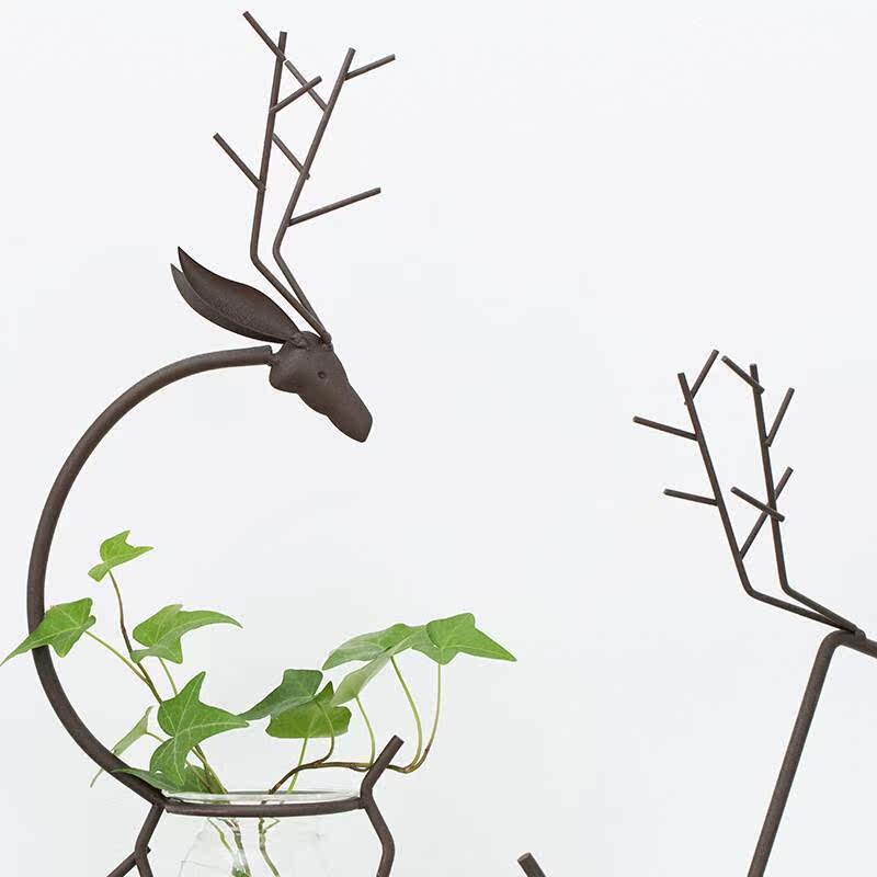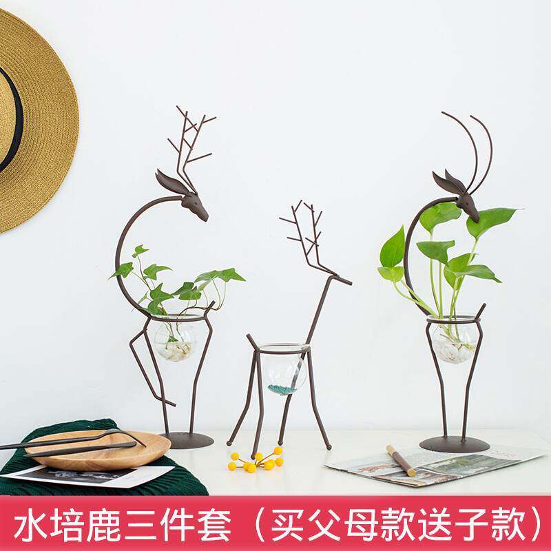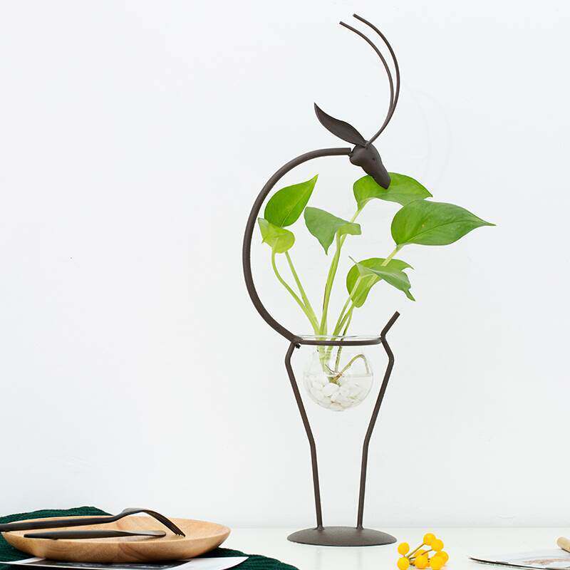 Hydroponic deer plant vase vase decoration creative living room decoration green dill transparent glass bottle flower arrangement