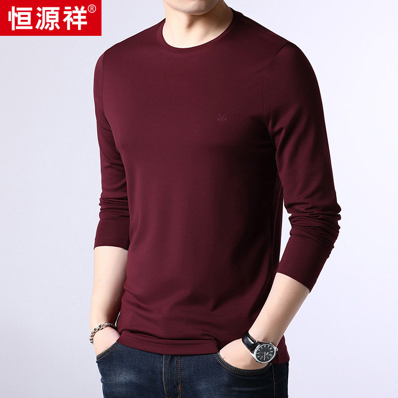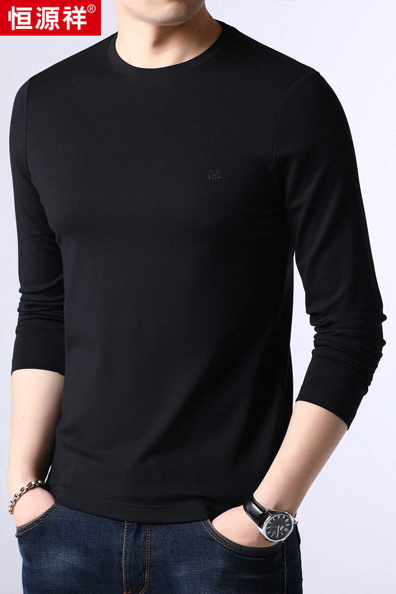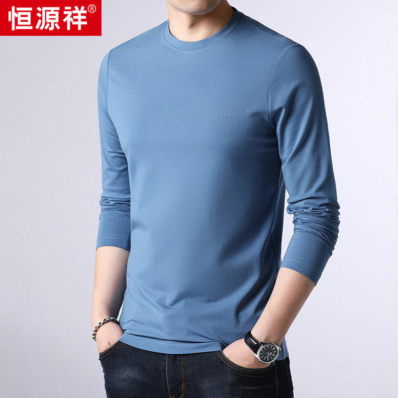 Hengyuan Xiang 2020 Spring mulberry silk T-shirt male long sleeve round collar pure color thin ice silk blouse Han version wave half sleeve clothes