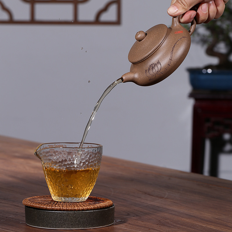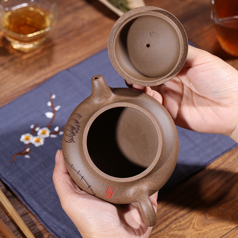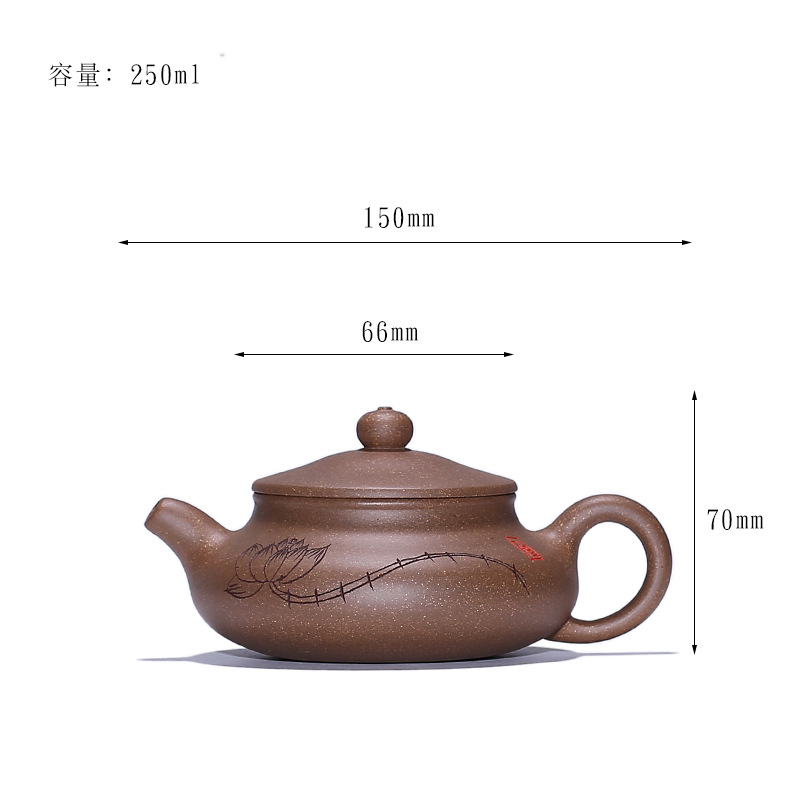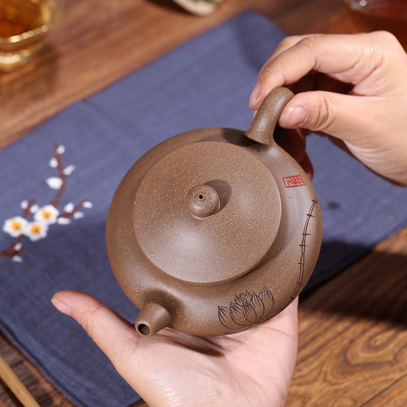 Lixing Purple Sand Pot Famous all-handmade original mine green grey clay flat drum jug home Kung Fu Carved 250c Inner Wall Zhang