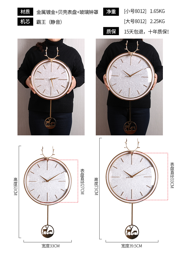 Nordic deer head wall clock Living room modern simple atmosphere Household fashion creative personality clock silent Quartz clock