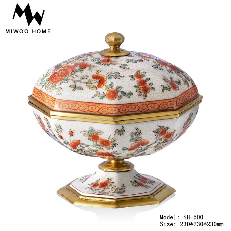 High-end American storage tank European and American luxury bedroom Bedroom Makeup Desk first decorated box pure copper ceramic multi-treasure box home swing decoration