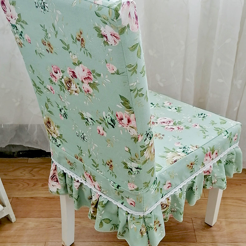 Household one-piece chair cover Cotton dining chair cover Pastoral style fresh fabric chair cover Set dining chair cover can be customized